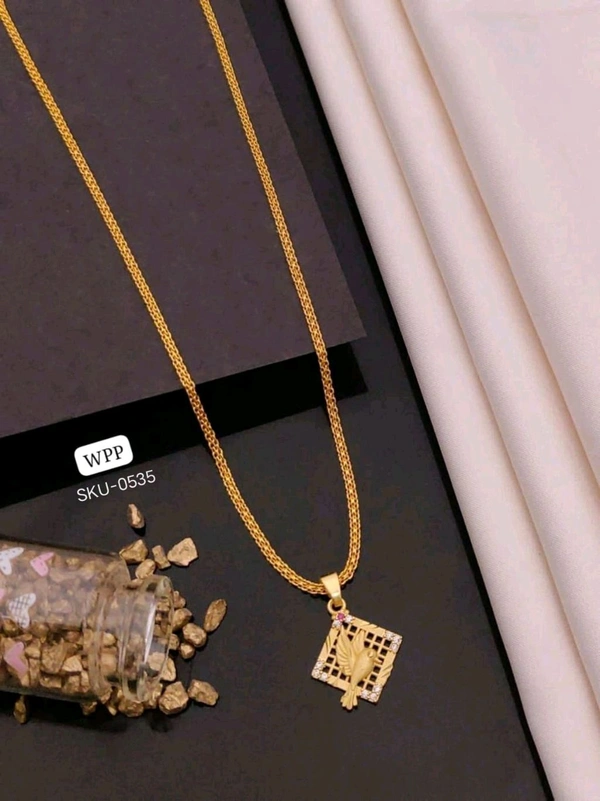 ✨ KANAF Fancy AD Pendant with Imported Box Chain (18 Inch) | 1 Gram Gold Forming Plated Necklace ✨