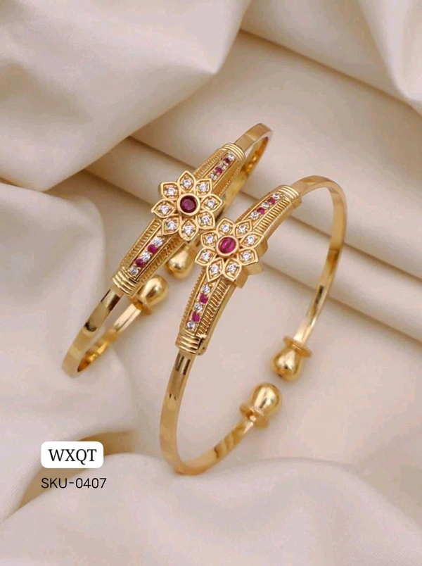 ๐ KANAF Folding Beautiful AD Diamond-Studded Kadli | Gold-Plated Floral Design Kada for Women & Girls