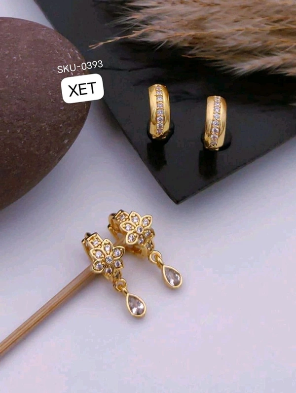Pair the simple gold AD bali for office or everyday wear, and wear the floral drop earrings for parties, weddings, or festivals.