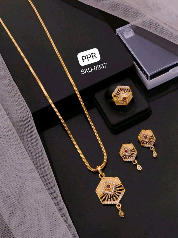 Showcase your modern elegance with this KANAF CZ AD 1 Gram Forming Pendant Tops Set, beautifully paired with a matching adjustable ring.