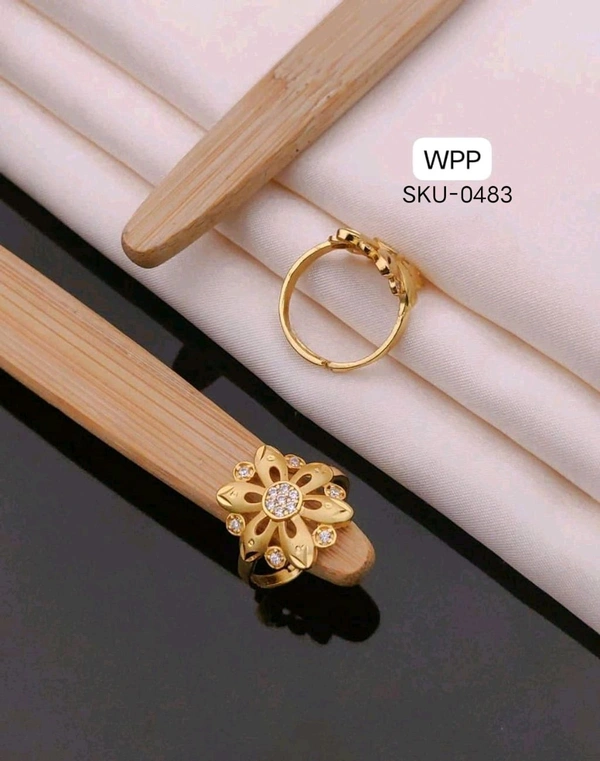This ring showcases a beautiful floral-inspired design adorned with shimmering CZ (Cubic Zirconia) stones, set on a 1 Gram Forming Micro Gold Plating base that gives a luxurious real gold look.