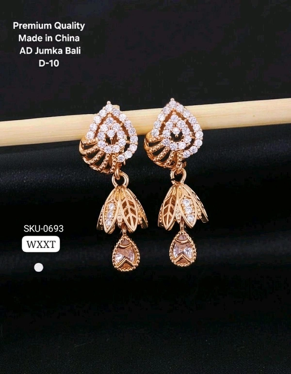 ✨ KANAF Premium Quality AD Jumka Bali Earrings | Teardrop Designer Rose-Gold Finish | Imported Shine | Made in China (D-10)