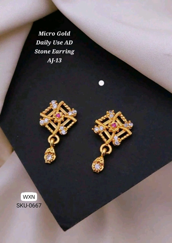 ✨ KANAF Micro Gold AD Stone Earrings AJ-13 | Elegant Drop Design | Daily & Party Wear for Women and Girls