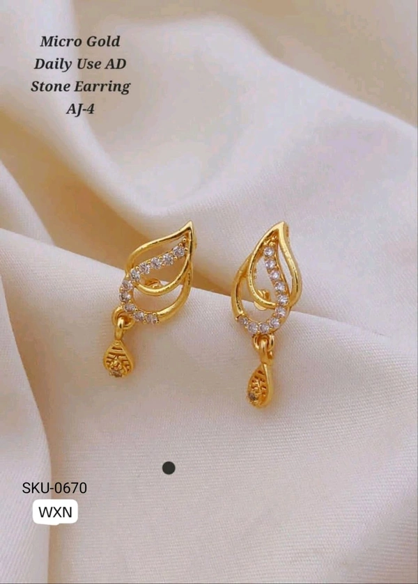 Bring nature’s elegance to your jewellery box with the KANAF Micro Gold AD Stone Earrings AJ-4, designed in a graceful leaf-shaped pattern embellished with sparkling American Diamonds (AD stones).