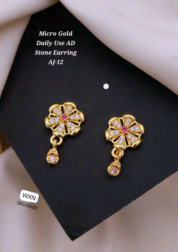 Add a timeless sparkle to your look with the KANAF Micro Gold Daily Use AD Stone Earrings (AJ-12).