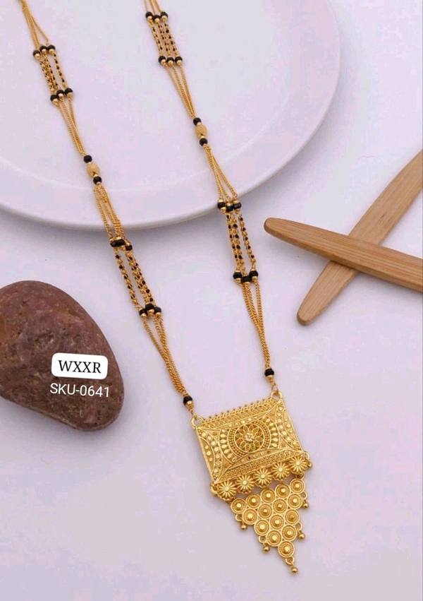 This stunning mangalsutra-style chain comes with a bold rectangular pendant (Mangalpot design), showcasing intricate handcrafted filigree detailing with floral and circular motifs 🌸.