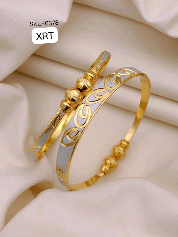 ๐ KANAF Fancy Silver CNC Kada Folding Kadli (2 Pc Set) | Brass Direct Gold Plated | Dual Tone Daily Wear Adjustable Kada for Women & Girls