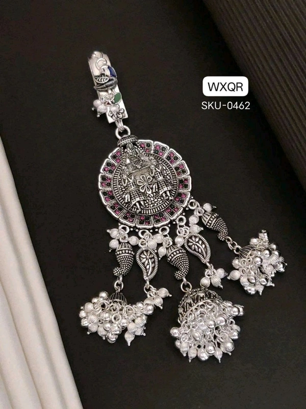 Made from premium metal alloy with an oxidised silver plating, it is durable, skin-friendly, and built for long-lasting shine. Perfect for sarees, lehengas, or classical looks, this juda is an ideal accessory to complete your hairstyle in style.