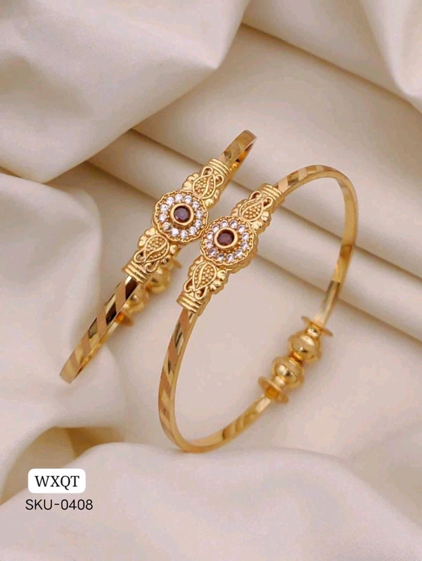 💛 KANAF Folding Beautiful AD Diamond-Studded Kadli | Gold-Plated Traditional Kada for Women & Girls