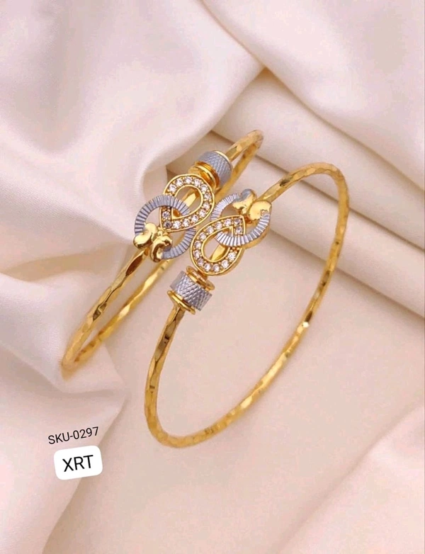 This designer kadli features a dual-tone infinity loop design — elegantly detailed with sparkling CZ stones and fine silver accents, symbolizing eternal grace and sophistication.