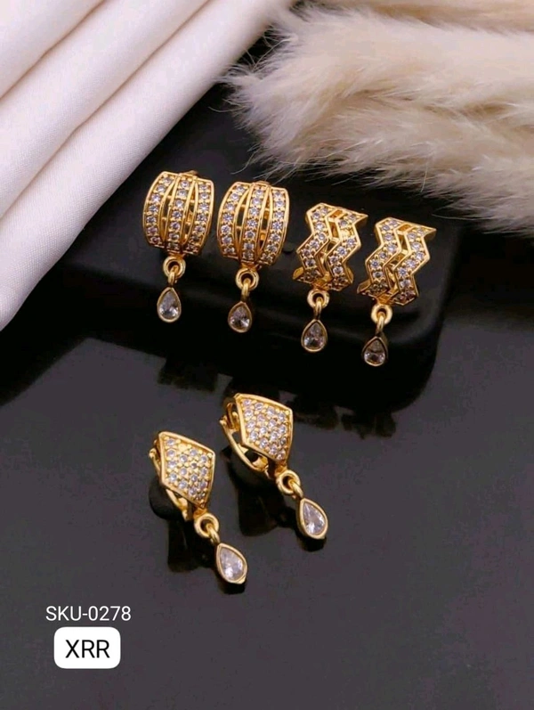 0278 💛 KANAF Gold AD Earring Baali Combo (Set of 3) | 1 Gram Gold Forming CZ Stone Earrings | Daily & Party Wear Jewellery for Women & Girls