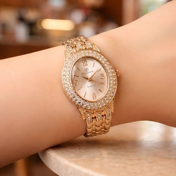 🌸 Design: Oval Dial with Premium Gold-Tone Finish