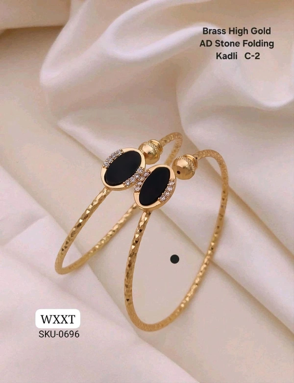 This stylish kadli features a classic oval black stone design, surrounded by premium AD crystals, giving it a rich and sophisticated appeal.