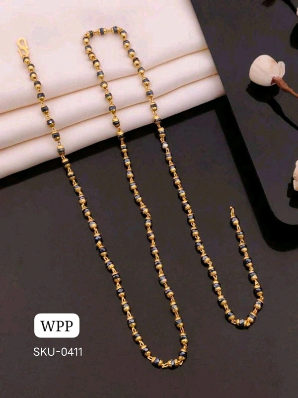 Made with high-quality brass metal, the chain is coated with a premium gold polish for lasting shine and paired with black enamel-finished beads that add contrast and elegance.