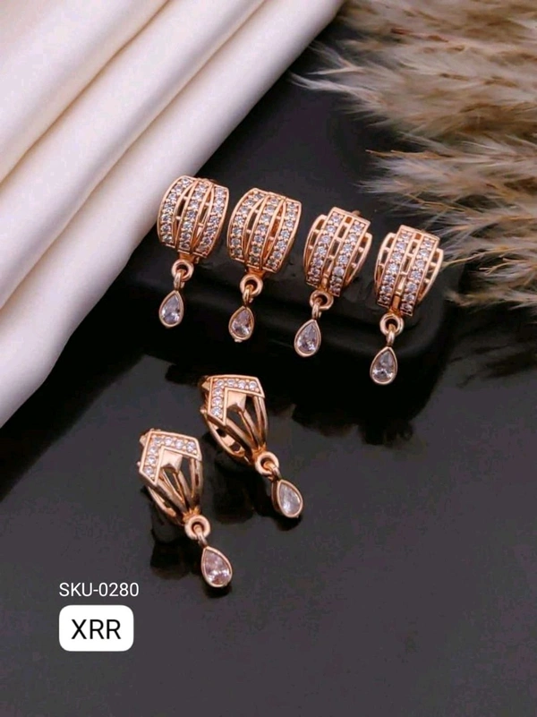 Each piece shines beautifully with premium CZ (American Diamond) stones, artistically set on rose gold plating to give a rich, luxurious look.