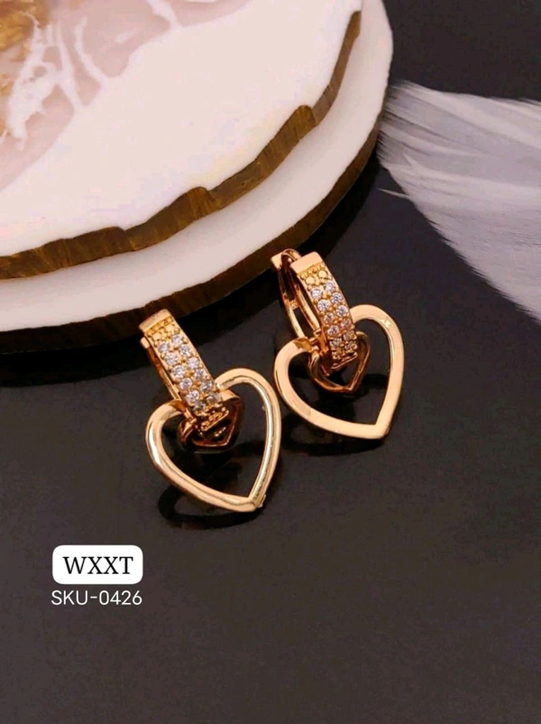 ๐ KANAF Rose Gold Imported Quality AD Diamond Studded Heart Bali | Stylish Romantic Earrings for Women & Girls
