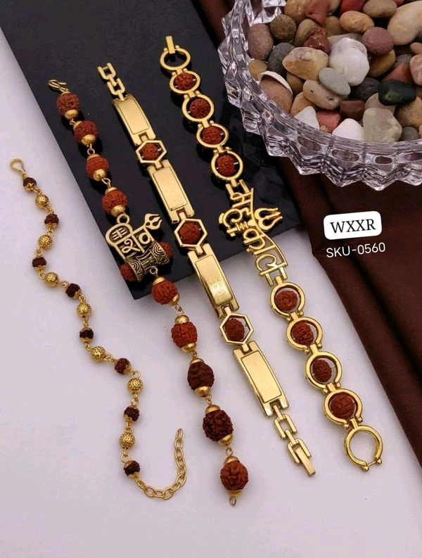 Channel your inner strength and divine energy with the Rudraksha Shiv Bracelet Combo (Set of 4) from KANAF Imitation Jewellery.