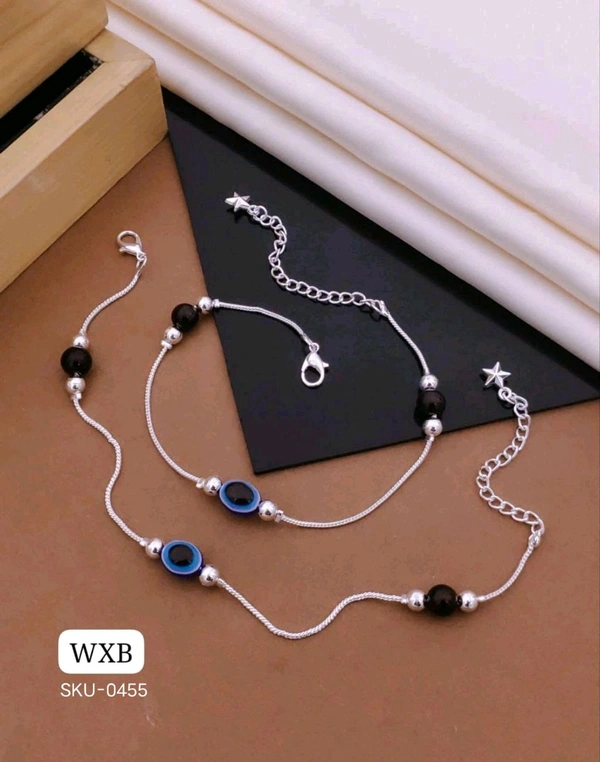 💫 KANAF Silver Fancy Payal for Women & Girls | Blue & Black Beaded Anklet | Elegant Silver Finish | Stylish Daily & Party Wear