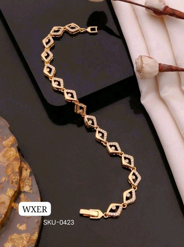 ✨ KANAF Rose Gold Imported Quality AD Diamond Bracelet | Elegant Geometric Design Bracelet for Women & Girls